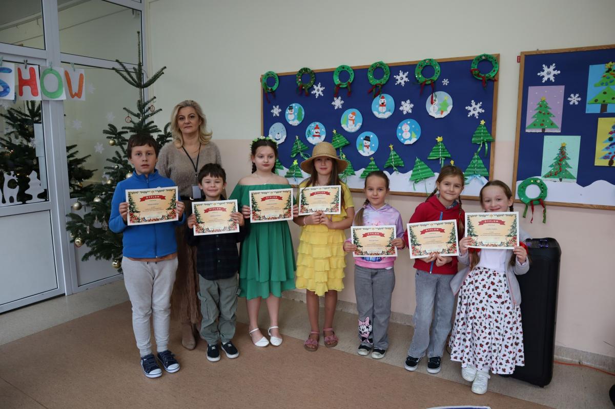 Rozstrzygnięty został konkurs plastyczno-językowy pt. „My Christmas card / Meine Weihnachtskarte” skierowany do uczniów klas 1–3. Zadaniem uczestników było wykonanie kartki świątecznej zawierającej życzenia w języku angielskim lub niemieckim. Komisja konkursowa przyznała 5 wyróżnień, a wszyscy uczestnicy otrzymali pamiątkowe dyplomy. Konkurs był doskonałą okazją do rozwijania zdolności plastycznych oraz motywowania uczniów do nauki języków obcych w świątecznej, radosnej atmosferze.